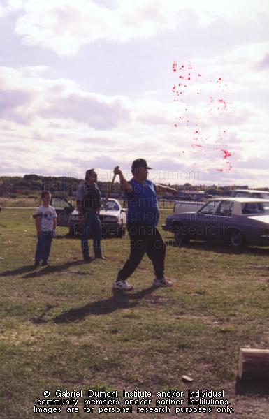 | Description: | Photograph of a man competing in the hatchet throw at the King Trapper Event at the Prince Albert Métis Fall Festival. |