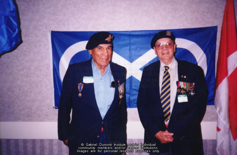 | Description: | Photograph of Stan Duroucher and Charlie Umpherville taken at the Prince Albert Metis Fall Festival in 1998. |
