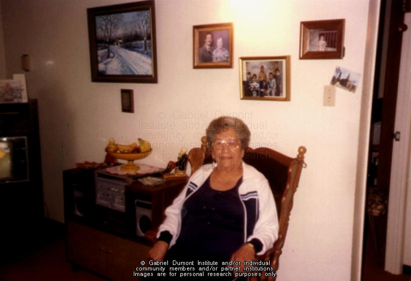 | Description: | Photograph of Agnes Stanley sitting in her home. |