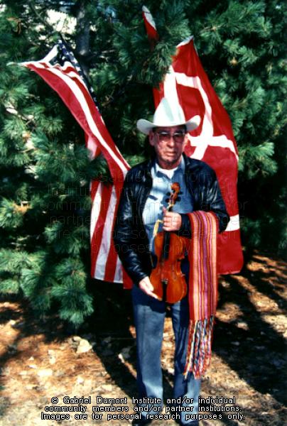 | Description: | Photograph of Métis Elder Fred Allary, from Belcourt, North Dakota, with fiddle and sash. |