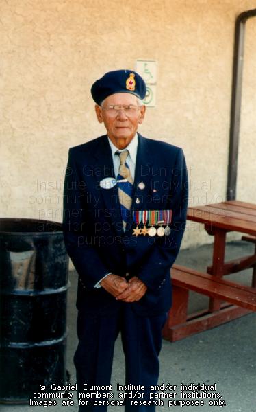 | Description: | Photograph of Max Lucier, a Métis veteran, taken at the Prince Albert Métis Fall Festival in 1996. |