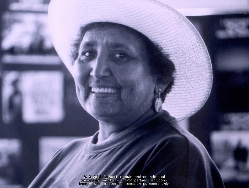| Description: | Photograph of Joanna (Blondeau) Potyondi, wearing a wide brimmed hat. |