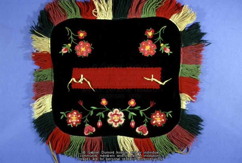 | Description: | Photograph of embroidered dog blanket. This item is part of the Gabriel Dumont Institute Museum Collection. |