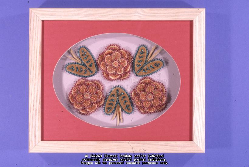 | Description: | Photograph of framed 3-D beadwork, by Marie Trottier. This item is part of the Gabriel Dumont Institute Museum Collection. |
