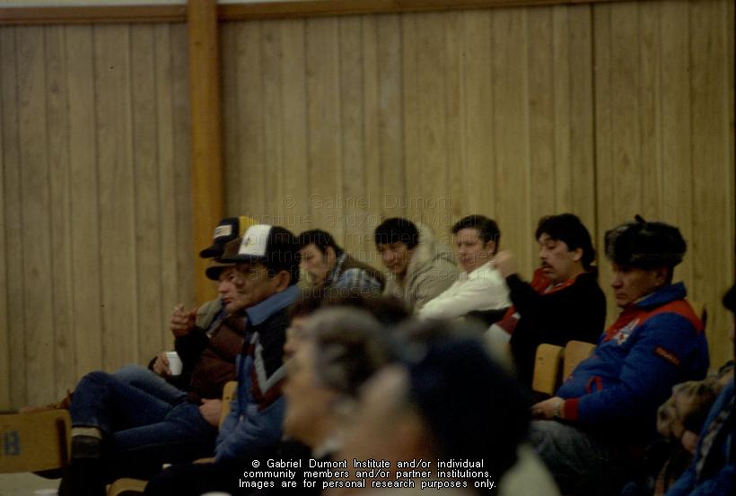 | Description: | Image of community people at an Association of Métis and Non-Status Indians of Saskatchewan (AMNSIS) meeting in the early 1980s. AMNSIS was the forerunner of the Métis Nation – Saskatchewan. |