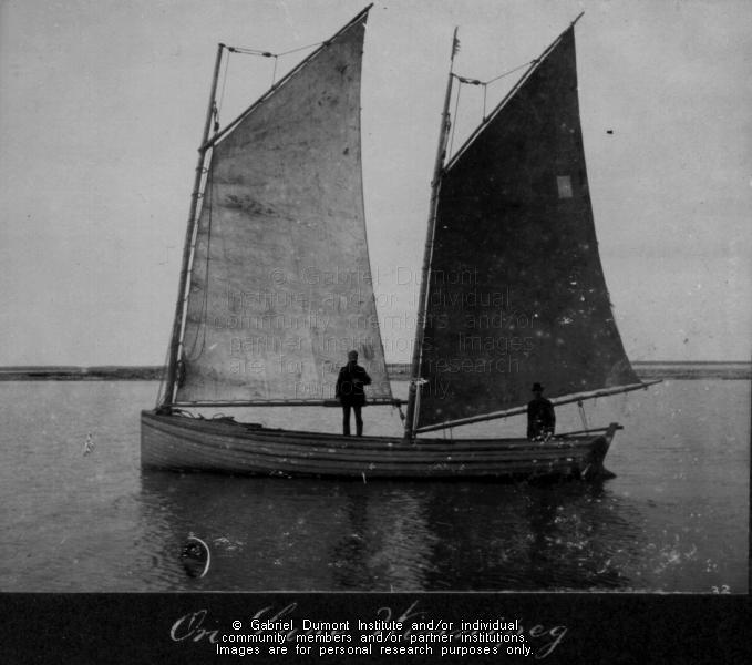 | Description: | A York boat under sail on Lake Winnipeg MB, 1900. From the Narcisse-Omer Cote fonds. |