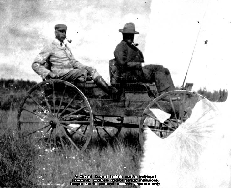 | Description: | Half-Breed Commissioners in a democrat, N.O. Cote in the rear seat at Stony Lake, near Carlton NWT, 1900. From the Narcisse-Omer Cote fonds.