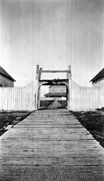 | Description: | Front gate at Hudson's Bay Company post at Ile a la Crosse, SK, September/October 1908. From the Frank J.P. Crean fonds. |