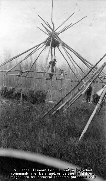 | Description: | Probably a name for a sun-dance lodge near Meadow Lake, SK, August 1909. From the Frank J.P. Crean fonds. |
