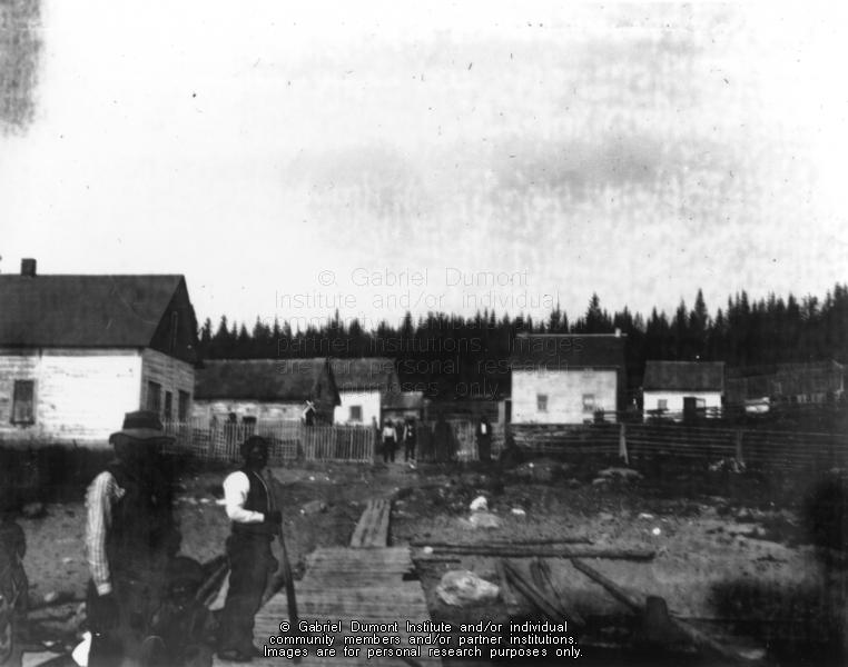 | Description: | Village [northern Saskatchewan] showing people in the foreground and