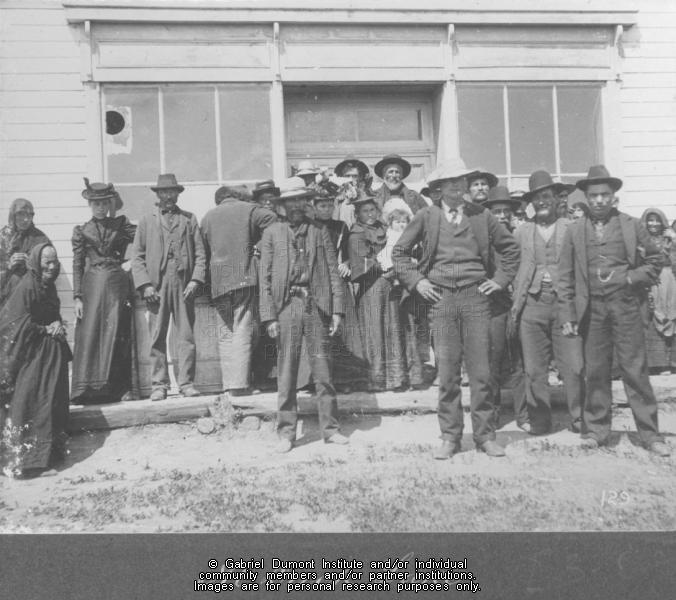 | Description: | A group of people at Duck Lake at the time of the visit by the Half-Breed Commissioners, 1900. From the Narcisse-Omer Cote fonds. |