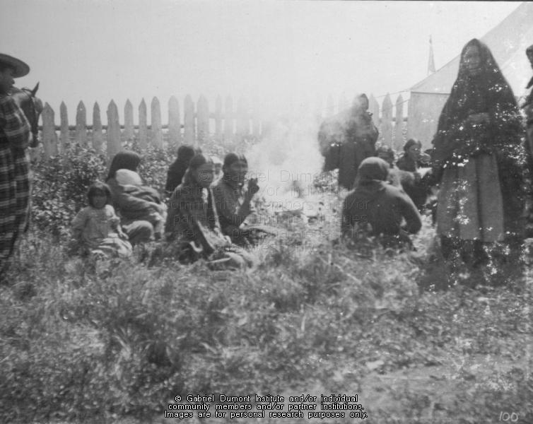 | Description: | First Nations and/or Métis at Snake Plains at the time of the visit by the Half-Breed Commissioners, 1900. From the Narcisse-Omer Cote fonds. |