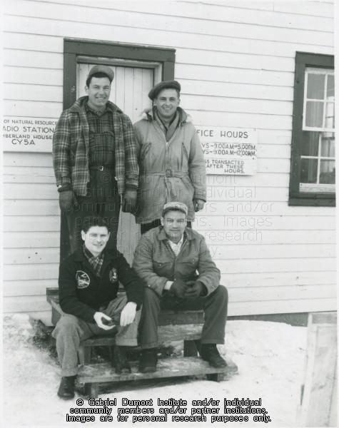 Dept. of Natural Resources Personnel at Cumberland House l to r, seated J. Bruce – James Branch, J.P. Brady – Field Officer 1949 (?) |