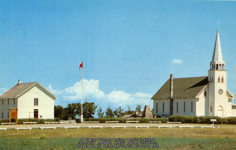 Postcard – “Batoche National Historic Site, Batoche, Saskatchewan. View of the old rectory and the church, built in 1884 |