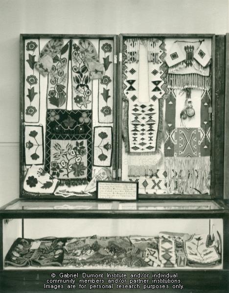 Indians – Costumes and Adornment Mary Weekes Papers – File XVI Royal Canadian Mounted Police – Museum Cree Indians’ work display in Mounted Police Museum |