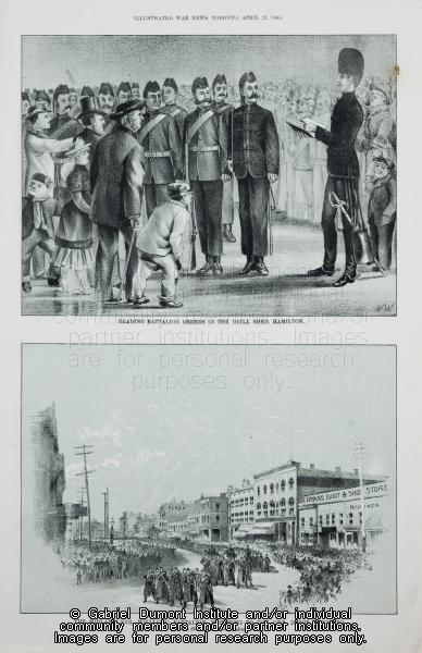 | Title: | Reading Battalion Orders in the Drill Shed, Hamilton and The Midland (Col. Williams’) Battalion |