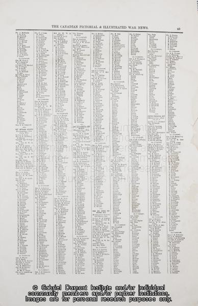 | Description: | On these pages (pgs. 41-44, The Canadian Pictorial & Illustrated War News, no date), is a listing of all the men in the Canadian Army involved in the 1885 Resistance, as well as all the members of the North-West Mounted Police serving in Western Canada. |