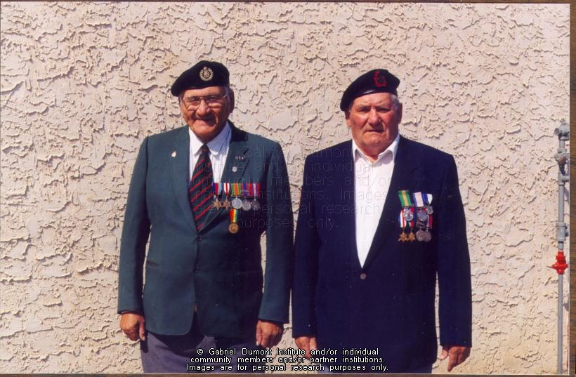 Photograph of Edward King and Vital Morin, September 1996. Edward and Vitalʼs stories can be found in "Remembrances: Interviews With Metis Veterans". To purchase Métis Veterans: Remembrances please visit: GDIʼs E-commerce Site. |