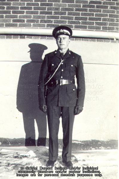 | Description: | Photograph of Corporal Howard Adams, Mountie, working uniform and hat, Regina, December 29, 1941 |