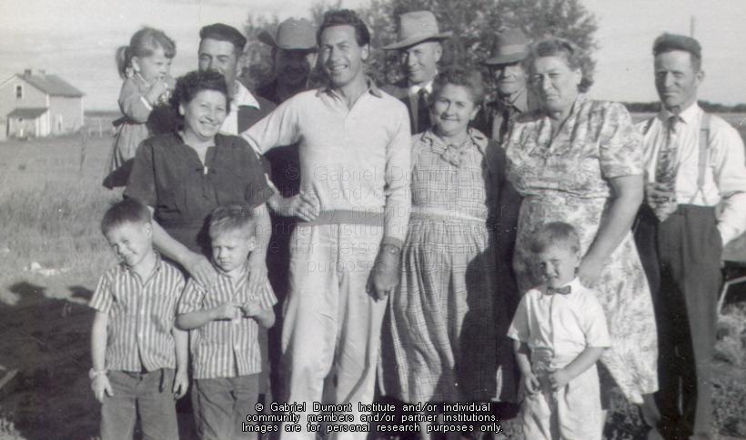 | Description: | Photograph of Howard Adams with sister Isla and relatives or friends, 1960s. |