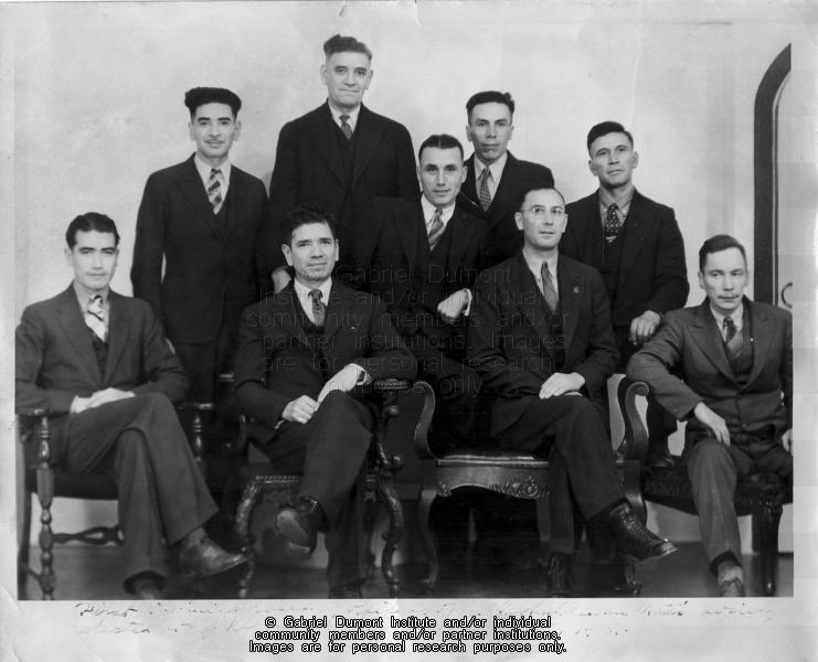 Photograph of the Métis Society of Saskatchewan, 1935. This image is to be used for research purposes only. The reproduction of this image in whole or in part is strictly prohibited without the permission of the copyright holder. |