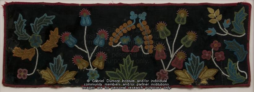 | Description: | Photograph of a beaded panel - framed. This item is part of the Gabriel Dumont Institute Museum Collection. This item is part of the Gabriel Dumont Institute Museum Collection. |