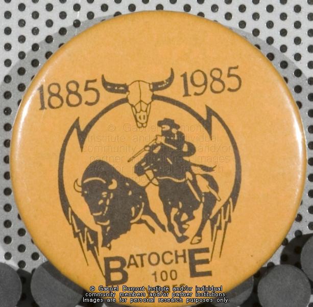 | Description: | Button commemorating the 100 year anniversary of Batoche and the 1885 Resistance. |