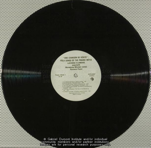 | Description: | “Une Chanson de Vérité”: Folk Songs of the Prairie Métis. |