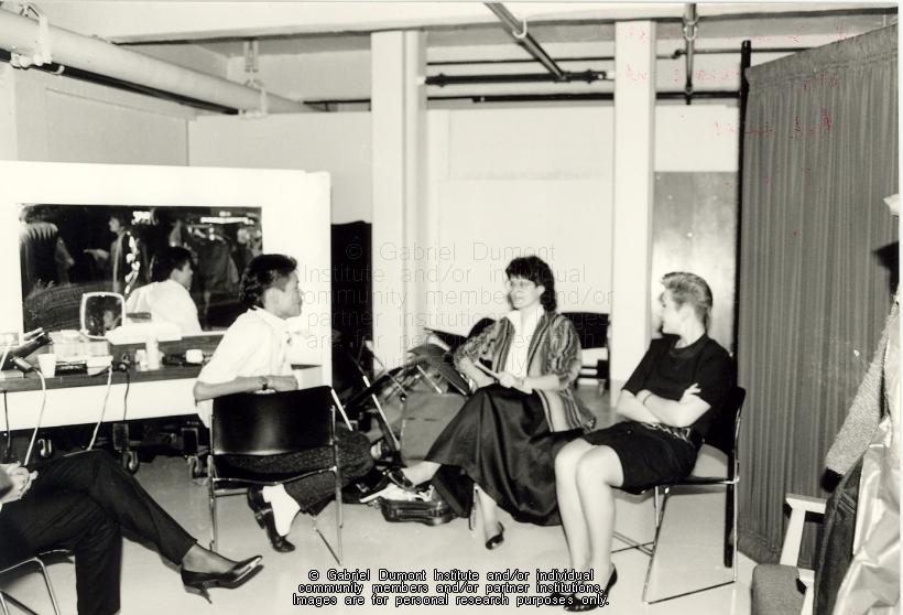 | Description: | Back stage at fashion show during the banquet at the 1987 Gabriel Dumont Institute cultural and educational conference, Regina.