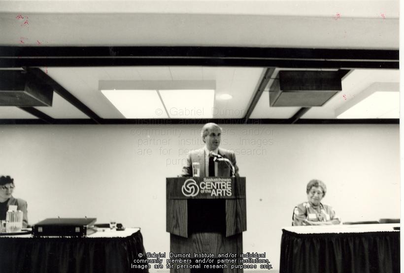 | Description: | Roy Romanow speaks at the 1987 Gabriel Dumont Institute cultural and educational conference, Regina.