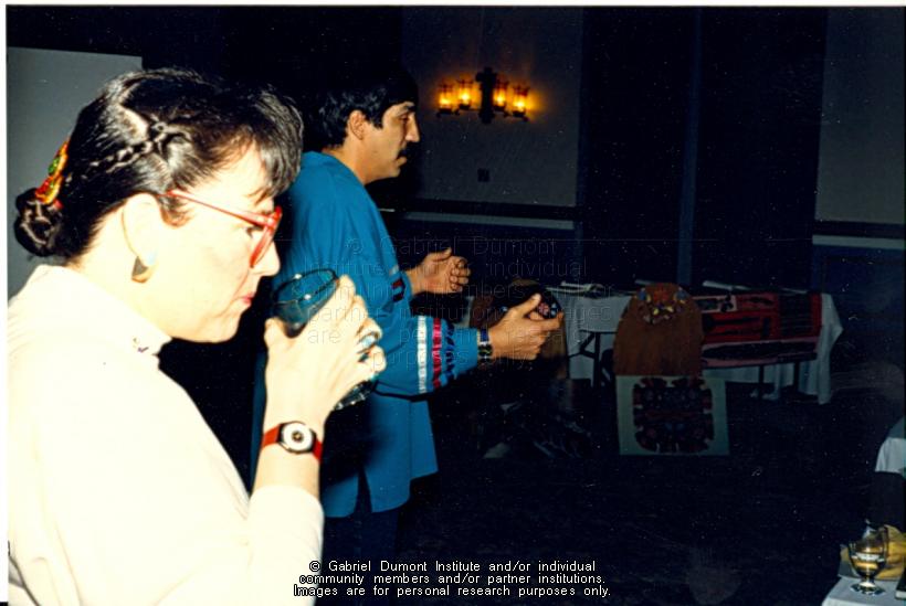 Calvin Racette and Sherry Racette at the Gabriel Dumont Institute "Education and the Family" Cultural and Educational Conference, Saskatoon, 1991. |