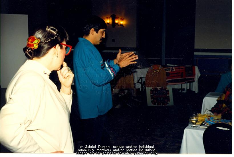 Calvin Racette and Sherry Racette at the Gabriel Dumont Institute "Education and the Family" Cultural and Educational Conference, Saskatoon, 1991. |