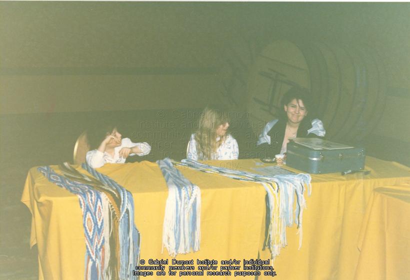 | Description: | Women with display of sashes at a Gabriel Dumont Institute Cultural Conference, Saskatoon. |