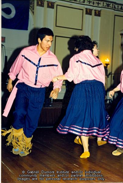 Beardy’s Dance Troupe at the Gabriel Dumont Institute "Education and the Family" Cultural and Educational Conference, Saskatoon, 1991. |