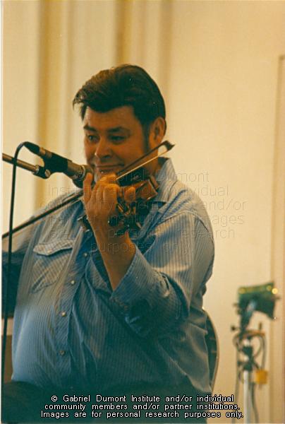 | Description: | John Arcand playing the fiddle at the Gabriel Dumont Institute "Education and the Family" Cultural and Educational Conference, Saskatoon, 1991. |