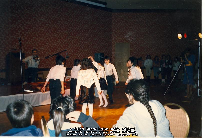 | Description: | Métis dancers and fiddlers at a Gabriel Dumont Institute Cultural Conference, Saskatoon.