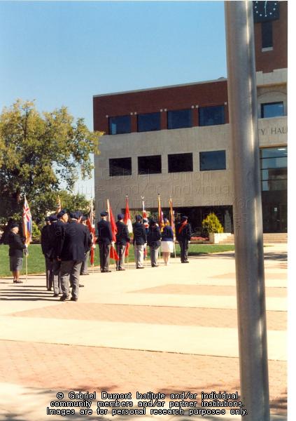 | Description: | Honour Guard in front of City Hall in Prince Albert just before the Métis Veterans' book launch. |