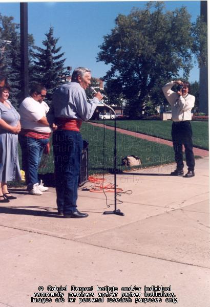 | Description: | Senator John Boucher speaking in front of City Hall in Prince Albert just before the Métis Veterans' book launch. |