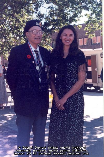 | Description: | Max Lucier with Leah Dorion in Prince Albert near City Hall in Prince Albert just before the Métis Veterans' book launch. |