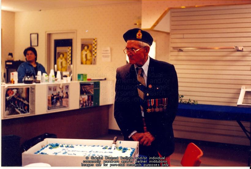 | Description: | Métis veteran Max Lucier in Prince Albert at the Métis veterans' book launch. |