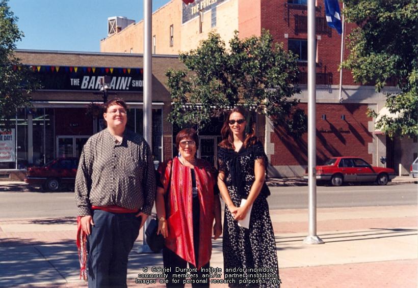 | Description: | Darren R. Prefontaine, Karon Shmon and Leah Dorion in Prince Albert before the Métis veterans' book launch. |