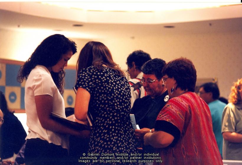 Angie Dreaver, Leah Dorion, and Karon Shmon at the launch of Remembrances: Interviews with Métis Veterans in Prince Albert. |