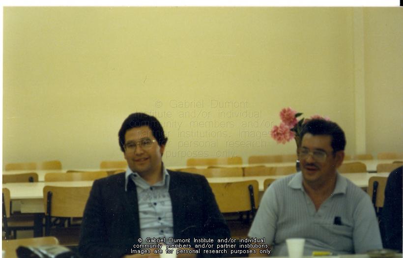 Christopher LaFontaine (left) and Tony Desjarlais at Radio, Television and Electronics course by Gabriel Dumont Institute in Esterhazy, SK. |