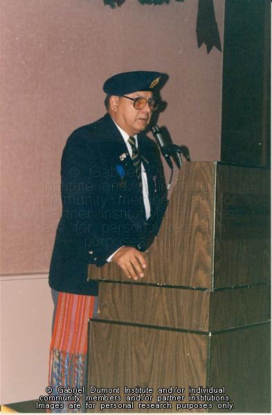 | Description: | Frank Tomkins speaking at the launch of Remembrances: Interviews With Métis Veterans in Saskatoon. |