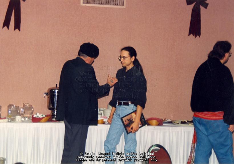 | Description: | Métis veteran speaking to Rob Innes at the book launch of "Remembrances: Interviews with Métis Veterans" in Saskatoon in 1997. |