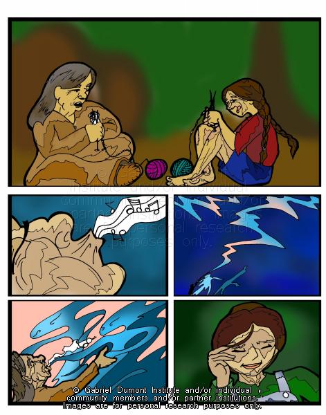 Description: Stories of Our People is a graphic novel anthology which includes the storytellers’ original transcripts, prose renditions of the transcripts, and five illustrated stories. This community-based book is steeped in the Michif-Cree language and culture. Métis stories seamlessly blend characters and motifs from Cree, Ojibway and French-Canadian traditions into an exciting, unique synthesis. Métis stories are an invaluable treasure because they tell familiar stories in interesting ways while preserving elements of storytelling lost to the Métis’ ancestral cultures. Stories of Our People includes stories about the three Métis tricksters (Wiisakaychak, Nanabush, and Chi-Jean), werewolves (Roogaroos), cannibal spirits (Whiitigos), flying skeletons (Paakuks), and of course, the Devil (li Jiyaab). To purchase a copy of this resource please visit: GDIʼs E-commerce Site.