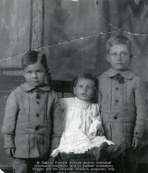 Three of the children of William and Vilna Fiddler. They are from left to right: John, Agnes (Mrs. Jules Flammond), and Max Fiddler. This image is to be used for research purposes only. The reproduction of this image in whole or in part is strictly prohibited without the permission of the copyright holder. Copyright for this image belongs to Lawrence Arnault, and/or the person(s) in the photograph, and/or their descendants. |