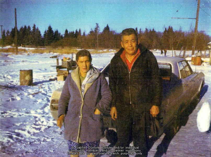 Baptiste and Ernestine Kennedy (née Roy). Baptiste was a brother to Emile Kennedy and Bella Fiddler. This image is to be used for research purposes only. The reproduction of this image in whole or in part is strictly prohibited without the permission of the copyright holder. Copyright for this image belongs to Lawrence Arnault, and/or the person(s) in the photograph, and/or their descendants. |