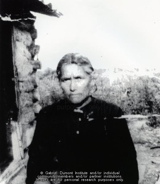 Margaret Aubichon (d. 1939) was a sister to Big Joe Aubichon. She was married twice. Her first husband was Baptiste Morin, and one of her children with him was Albertine Laliberte. Her second husband was Norbert Fraser, and one of her children with him was Isabelle Bishop. This image is to be used for research purposes only. The reproduction of this image in whole or in part is strictly prohibited without the permission of the copyright holder. Copyright for this image belongs to Lawrence Arnault, and/or the person(s) in the photograph, and/or their descendants. |