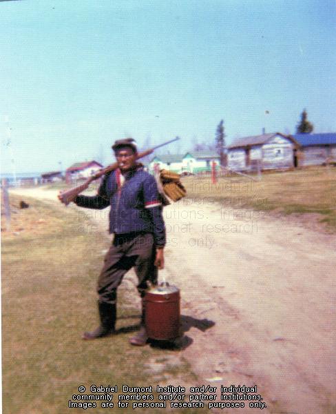 | Description: | George Lafleur at Sled Lake. This image is to be used for research purposes only. The reproduction of this image in whole or in part is strictly prohibited without the permission of the copyright holder. Copyright for this image belongs to Lawrence Arnault, and/or the person(s) in the photograph, and/or their descendants. |